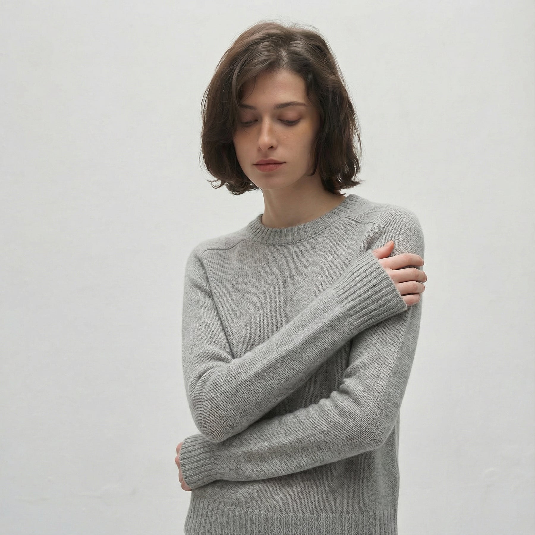 Prix normal $473.00Pull décontracté et chaud à col ras du cou tricoté en cachemire régénéré. Pour hommes et femmes.