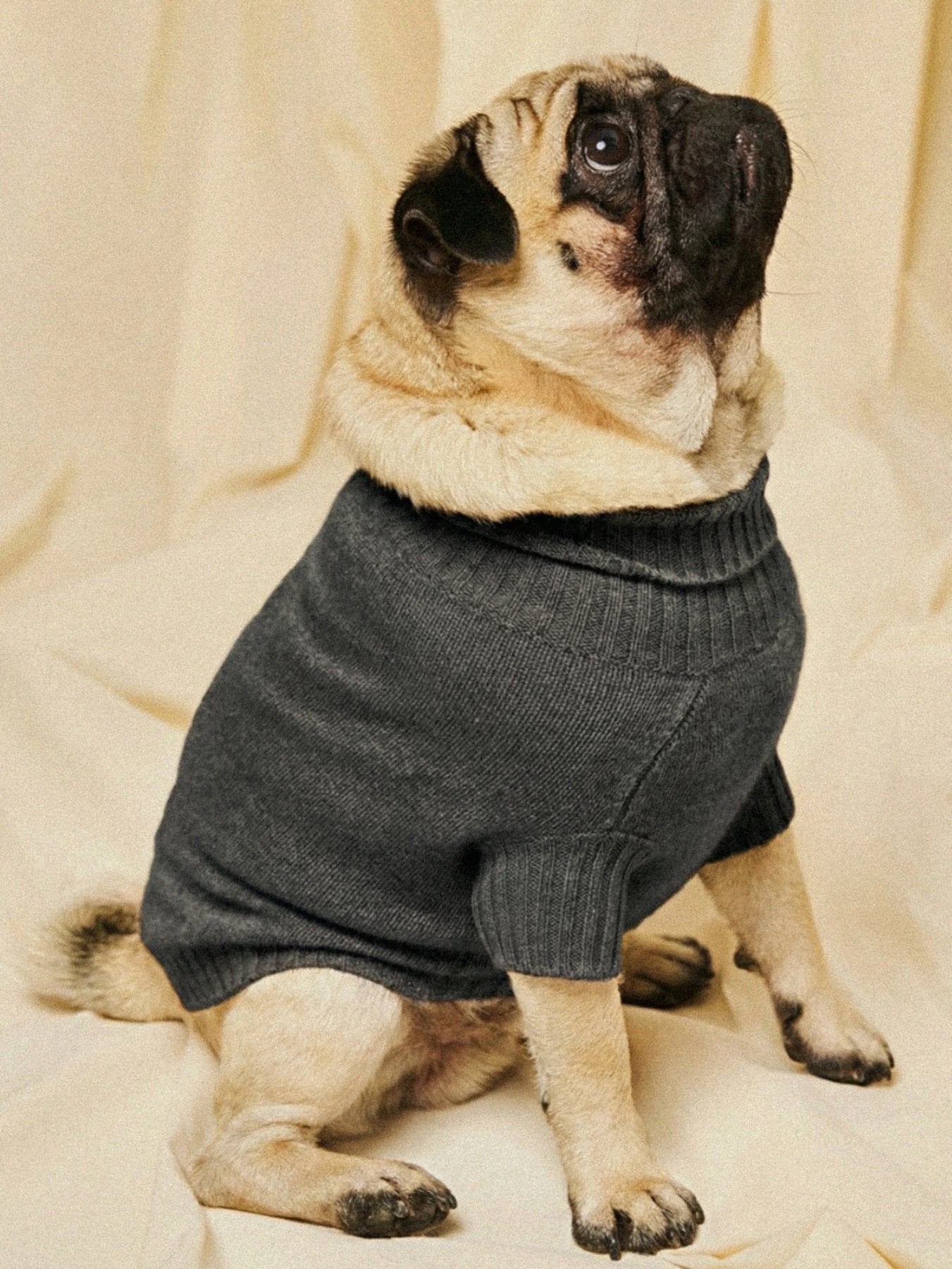 Prix normal $137.00Tricoté en cachemire régénéré, notre pull chien classique a une coupe droite. Col roulé, manches et ourlet en bord-côtes.