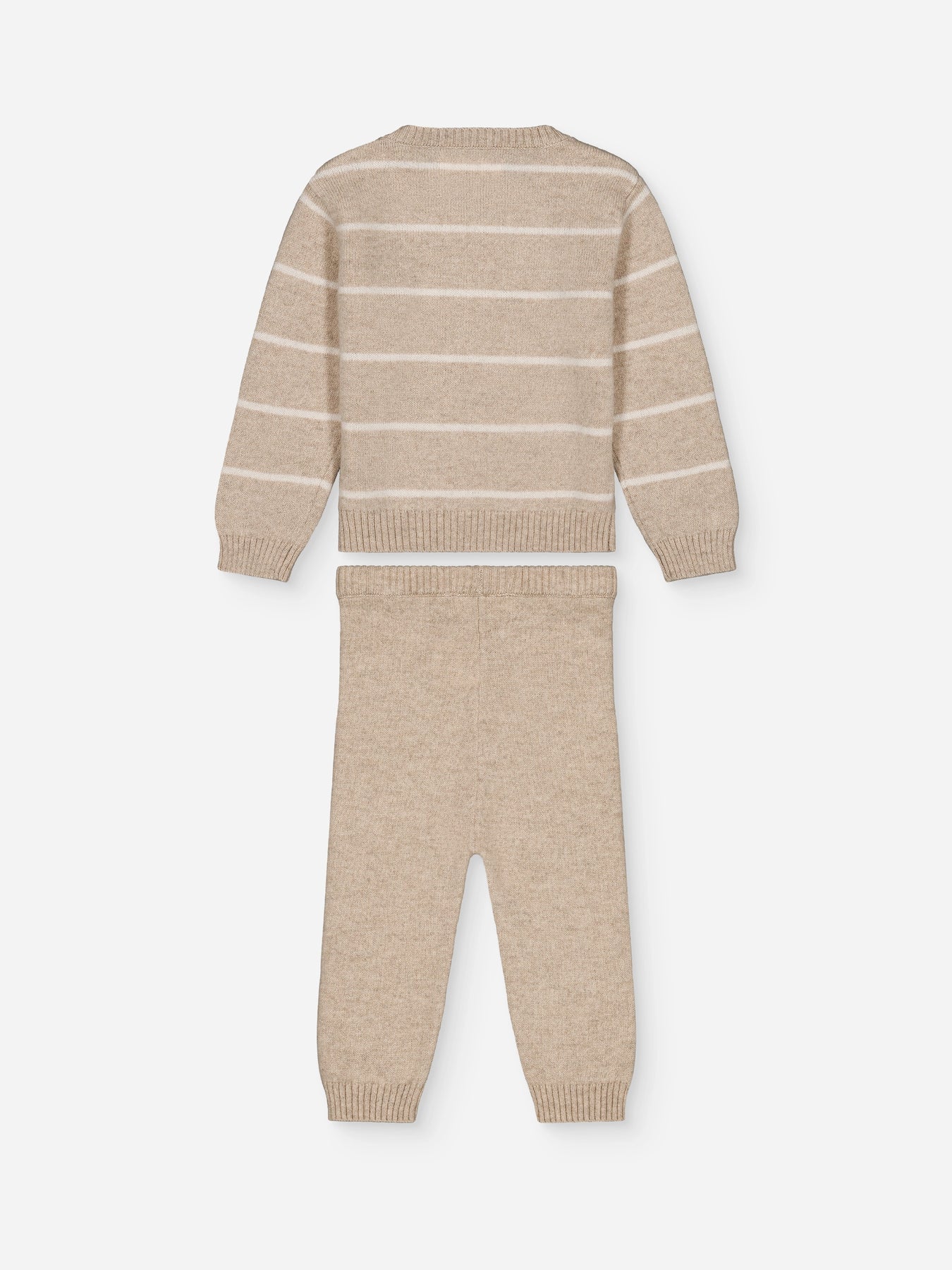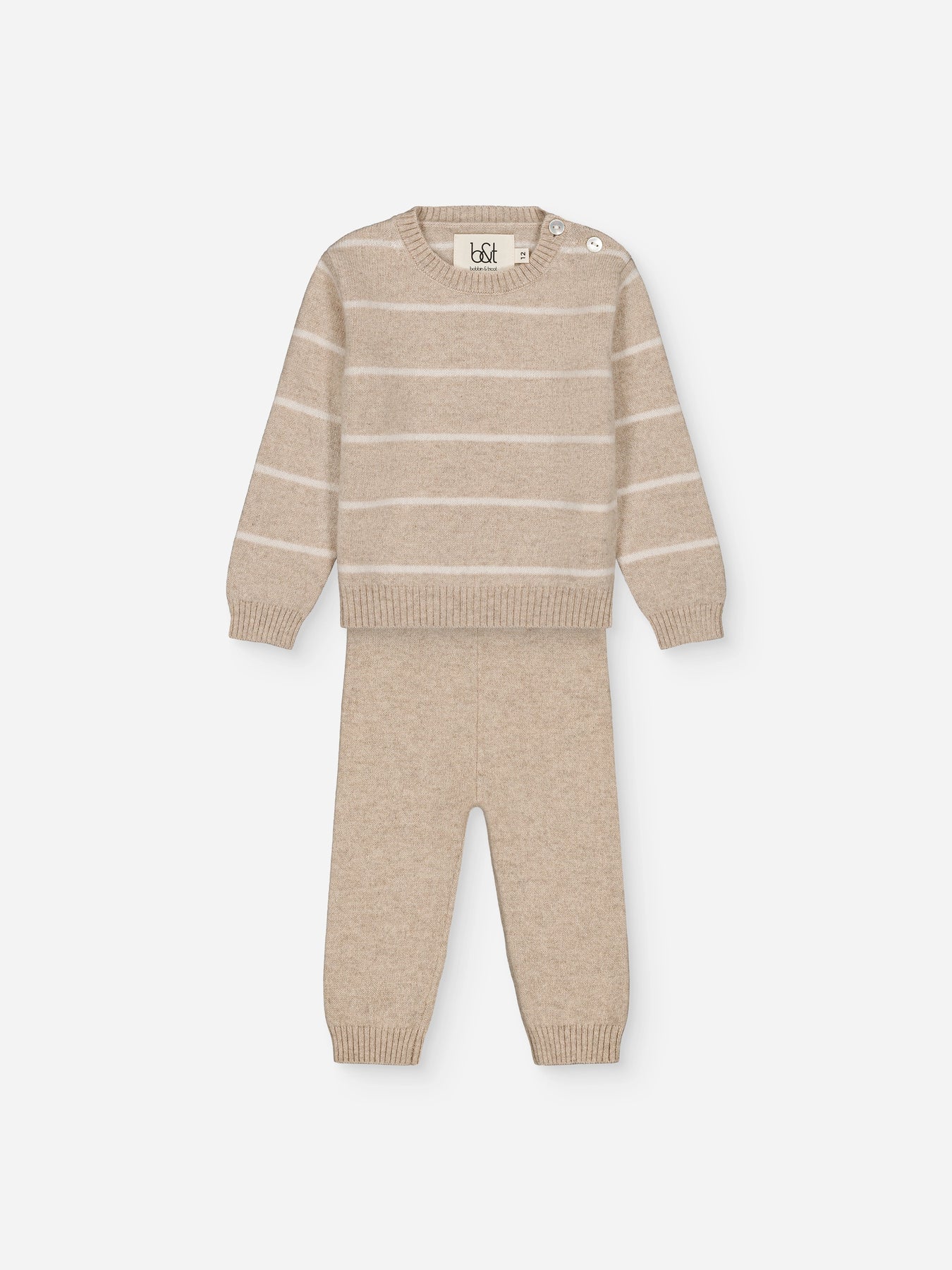 Prix normal $219.00Cet ensemble en cachemire pour bébé allie confort douillet et style intemporel - un ensemble unisexe avec une touche moderne de rayures.