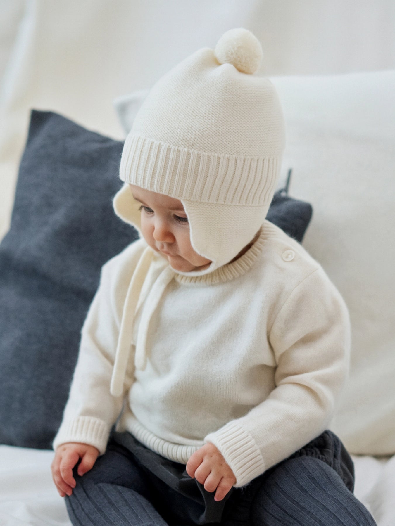 Prix normal $77.00Ce bonnet en cachemire garde les oreilles de bébé au chaud de la plus adorable des manières. Orné d'un pompon, il est doté de liens à nouer pour un maintien optimal.